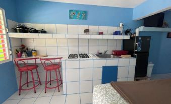 Studio 3 is a cozy studio apt with 2 queen beds side by side, icy cold A/C, a fully equipped small kitchen where guests can cook their own meals, bathroom, and a balcony overlooking the backyard. This is a great option for those guests who desire a great bang for your buck. It has all of the comforts one would need for a short trip to Vieques, plus tranquility all around. There is a great yard for those with children, or simply for guests who want to be outside to enjoy the fresh Caribbean breezes passing through.About pets:No pets allowed.About checkOut:Check out before 11:00 AM.About children:Children allowed: ages 0-17.About checkIn:Check in after 3:00 PM.About smoking:Smoking is not permitted.About minBookingAge:Minimum age to rent: 18.About events:No events allowed.