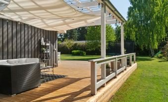 Casa singola, costruita nel 2006. A 1.2 km dal mare. Per uso privato: terreno 1'422 m2, curato giardino. Terrazza (42 m2), barbecue, spazio giochi per bambini (scivolo, altalena). Nella casa: tappeto elastico, lavatrice. Parcheggio presso la casa. Parcheggio coperto. Negozio alimentare 325 m. Campo da golf 6.4 km. Il proprietario non accetta gruppi di giovani.