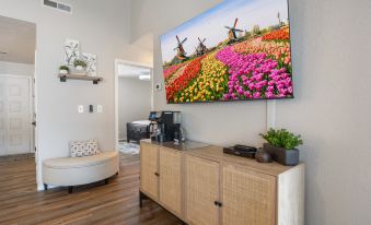 The second bedroom features a queen-sized bed, nightstands, dresser, closet and flat screen TV.