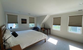 The second floor has another full bath and two large bedrooms, each with its own thermostats. One bedroom includes a king bed, and a convertible couch that folds out to a twin bed. The other bedroom includes a queen bed. All bedding, linens, and towels are provided.