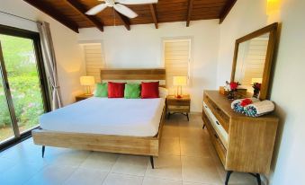 Un posto incantevole, case ben arredate e molto confortevoli immerse in una graziosa vegetazione molto ben curata. Noi eravamo in una delle ville fronte spiaggia, costano di più ma ne vale la pena. La casa e’ abbastanza attrezzata forse una spugna, una scopa e uno sgrassatore in dotazione sarebbero utili. Le pulizie e il cambio asciugamani viene eseguito ogni giorno ma dipende da chi le fa, possono essere molto approssimative o estremamente dettagliate. La coppia che gestisce e’ estremamente disponibile e di grande aiuto. La posizione e’ perfetta perché a metà dell’isola e a un passo dalla splendida Savannah bay. Sul mare fronte casa abbiamo visto le tartarughe e i tramonti più belli di sempre. Questo posto ci rimarrà nel cuore.