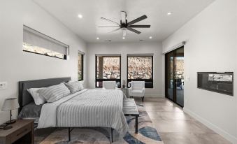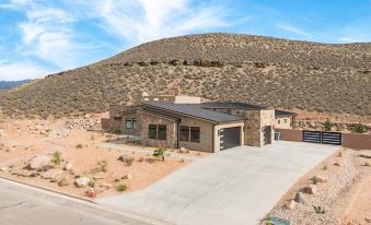 Your entire group will enjoy easy access to everything from this centrally located beautiful new home!! Easy drive to Zion NP, Sand Hollow, St. George, and golf courses. Bring your SXS's and drive straight from the house to 100's of miles of trails!! When you're not exploring, enjoy the massive covered patio with private pool, hot tub, outdoor kitchen, putting green, yard games, and 360 degree views - Zion Nat'l Park to the east, Kolob Canyon directly north, and stunning Mesa's in every direction.