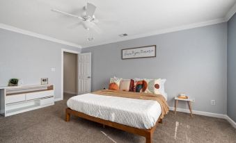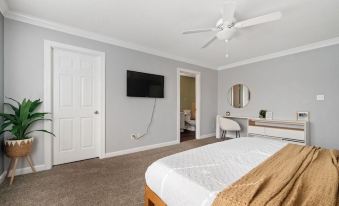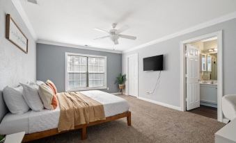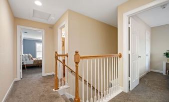 This 3 bedroom and 2.5 bath townhouse has a fully equipped kitchen, Keurig/Nespresso, dining area, 55-inch Roku smart TV in the living room, + 3 additional Roku Smart TVs (bedrooms), high-speed wireless internet, fenced backyard, 5 comfortable beds (1 king, 2 queens, 1 twin, 1 sofa bed), washer/dryer, & SELF CHEK-IN!