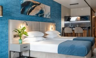 New Living is a four-star hotel located on the 16,17 floors of the Novotel hotel in the business part of the city near the historical center. The hotel offers 30 modern comfortable rooms of various categories with cozy furniture, a separate work area, a refrigerator, a coffee maker, telephones, air conditioning, a microwave, a TV and so on. 20 of them have a kitchen, which is very convenient for a long stay in a hotel. It also offers a restaurant, a 24-hour front desk, free Wi-Fi throughout, parking and much more.