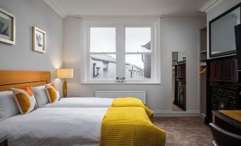 His approach changed as soon as he realised he was in the wrong, showed us to the room where we found it wasn’t what I had payed for. I booked a king size bed with two singles, was given a room with just two singles. The bathroom had hairs everywhere and hardly any toilet roll. Obviously hadn’t been cleaned and replenished. When we returned back to the room later on in the evening the room was extremely warm, tried to adjust the heating where we discovered it was only able to be changed by the bar downstairs. The bar closed at 10pm to which afterwards there was no staff on the premises. Either be too hot or open the window and have the loud noises from a main road. Couldn’t win either way.