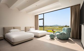 環境特別好,老闆也很熱情,裝修很新很符合年輕人的需求,裏面有一個大院子,很有回家的感覺。晚上坐在院子裏吹着晚風,聽着蟲鳴,一秒鐘回到小時候的夏天夜晚。房間裏有浴缸,景色不錯,很出片。最最最重要的,床品真的巨巨巨巨舒服,倒頭就睡,一覺到天亮!總而言之挺滿意的,連續住了兩晚!距離高鐵站也比較近,去神州半島租車也方便。