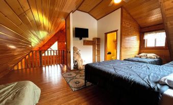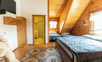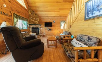 A very comfortable stay with pets, hard surfaces, with easy access to the backyard. Great for a family, lots of walking paths and activities nearby. The cabin was very warm and comfortable in the cold winter month of December, the only downside was limited seating in the living room, and it was uncomfortable. The mattress in the downstairs bedroom was very firm.