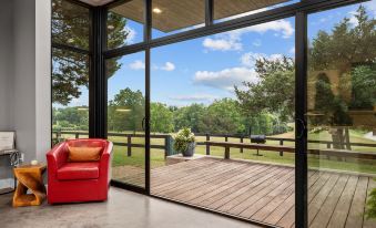 AMENITIES - 50” flat screen Smart TV, WiFi, electric fireplace in living area, front porch with seating, charcoal grill, hot tub, outdoor firepit (wood provided) outdoor shower, views, located on 48 acres, horses & wildlife
