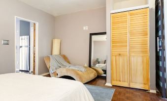 A parking pass is available for guests arriving by car.About pets:Pets allowed: dogs and cats (limit 1 total).Please take your pet in the front to pee and poop..About checkOut:Check out before 11:00 AM.About children:Children allowed: ages 0-17.About customRules:Please do not smoke in the apartment. You can smoke in the back yard and front porch..Do NOT bring your dog if it suffers from separation anxiety or will bark when you're away, as this is disruptive to those who live in the building.,Please don't let your pet pee on the grass in back. They're fine exploring out back, but please walk them in front to do their "business." Thanks!.About checkIn:Check in after 3:00 PM.About smoking:Smoking is not permitted.About minBookingAge:Minimum age to rent: 21.About events:No events allowed.