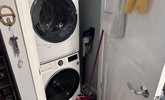 The full bathroom includes a tub/shower combination, and all the linens and basic bathroom amenities you need. Also, this apartment includes your own washer and dryer (with detergent and fabric softener) should you need to freshen up your clothes.