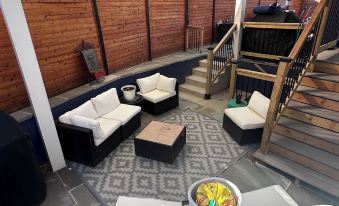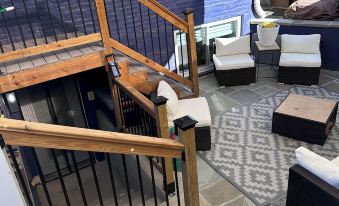 Right outside your private entrance is a quaint shared sunken patio with plenty of seating and a gas grill should you want to whip up a meal outdoors.