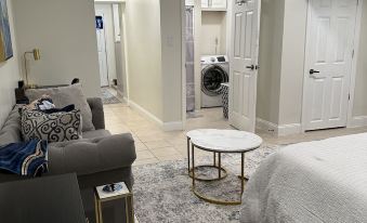 Welcome to the Modern stay ! This English basement apartment is filled with an open floor plan . It’s complete with a full kitchen, dinning area, washer/drying rack, and living room allowing for plenty of room to sit around, enjoy watching TV, or playing a game. There is also a dedicated work space with a desk and a chair.You will find the bathroom on your way to the primary bedroom. The primary bedroom is complete with queen bed, dresser, closet, and full length mirror. It’s located in Lamond Riggs community in DC. Walking distance to a shopping center that features a Walmart ,coffee shop ,Chick-fil-A restaurant,One-life fitness center and Fort-totten metro station.