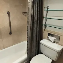 There was no shampoo or soap dispenser in shower. There was no way to dry your hands. The storage lockers didn’t fit suitcases.