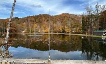 You will love staying in this newly built cabin by the river. At the head of camp you will have a great view of all activities, the pond, and just a short walk to the store.