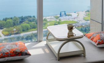 房間雖然不算特別大,但佈置得很温馨,衞生打掃得乾乾淨淨,床品也很柔軟舒適。透過窗户就能俯瞰整個威海灣和中心文化廣場,還能遙望劉公島,景色美不勝收。性價比也超高,這個價格能住到這樣的海景房,真的很划算。