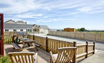 Very modern, beautiful bungalow "Francis Bungalow", surrounded by trees and fields. In the district of Helston, 6 km from the sea, 6 km from the beach, on the golf course. For shared use: park with lawn. Children's playground. Private: garden. Hot tub, garden furniture, barbecue. In the complex: restaurant. Parking at the house. Grocery 2 km, supermarket 2 km, restaurant 10 m, bar 2 km, bakery 650 m, café 650 m, bus stop "Menage Street, Helston" 3 km, railway station "Camborne" 12 km, sandy beach "Porthleaven" 7 km, park "Wheal Dream" 10 m, lake Coronation Park 3 km. Golf course (18 hole), children's playground 10 m, fishing possibilities 6 km. Nearby attractions: The Cornish Seal Sanctuary 8 km, Kynance Cove 21 km, St Michaels Mount 18 km, Lands End 39 km, Praa Sands 12 km, St Ives 26 km. Well-known lakes can easily be reached: Carminowe Creek 8 km. Please note: the complex has another 6 chalets for rent. 5-room bungalow. Spacious and bright, beautiful and modern furnishings: open large living/dining room with dining table and TV (flat screen). 1 double bedroom with 1 double bed (150 cm, length 200 cm). 1 room with 2 beds (90 cm, length 190 cm). 1 double bedroom with 1 double bed (137 cm, length 191 cm). 1 double bedroom with 2 beds (90 cm, length 190 cm). Open kitchen (4 hot plates, oven, toaster, kettle, microwave). Bath/WC, bath or shower/WC. Gas heating. Large garden. Terrace furniture, barbecue, sitting area. Beautiful view of golf course. Facilities: Internet (WiFi). Parking at the house. Please note: suitable for families. Maximum 2 pets/ dogs allowed. TV only EN. Smoke alarm.