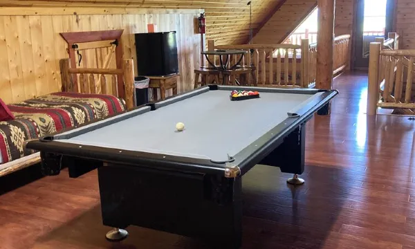 We love to invite you to a gorgeous custom log home tucked deep with in the Southern Hills. This property offers a stunning view for miles and 3 deck levels for viewing pleasure. You will enjoy the local wildlife as they track through the property. This home carries with it a relaxed, comfortable setting with plenty amenities. The open hand-hewn log loft offers a pub table, mini fridge, pool table, half bathroom, 65" tv and additional sleeping for 5. There are 3 twin beds and a full futon in the loft. The main level has complete kitchen, dining room and living room. The kitchen is stocked with pots, pans, utensils, tin foil, sandwich bags etc and your basic spices. We also have a regular drip coffee pot with coffee and filters included. We have two highchairs available for this home. There is a beautiful island with 4 stools and a dining room table that seats 6 on the main level. The propane grill (propane provided) is on the main level deck. Located on this level is the master bedroom, spacious walk in closet, bathroom with tub/shower. An additional room on this level is capable of accommodating two. There is a bathroom with attached laundry room for easy access. The lower level offers two queen bedrooms and a bathroom with shower. A large sectional couch with a 50” flat screen for entertainment and an adjacent social area. We have two full roll away beds located just down the hall. You will also find a pak n play and high chair located on this level. There are two security cameras on the property visible to guests. One is located at the front door to the left and the other is on the lower deck towards the swim spa which in NOT available to guests. This home is minutes from Custer offering a great Black Hills experience for families and more. Minutes from Custer State Park, Needles Hwy, Wind Cave National park and then some. Unfortunately the hot tub located on this property is NOT available for guest use. We are sorry for any inconvenience. We do have a large area available for additional rates to host your next family event, wedding, graduation, reunion. We have tables and chairs provided. Inquire with property manager for additional information.