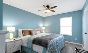Second Bedroom – King-size bed, TV, and ceiling fan