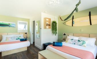 This place exceeded my expectations. From the outside, it looks like nothing special but inside, the cabins are very nice and cozy. I love the hammock inside, the fridge and microwave make it convenient to have things handy that the kids will eat. For us, the breakfast at the cafe was simple but delicious! Only a short drive from the beach, and the resort fee covers some neat souvenirs. We don’t surf but if you do, they have surfboards available to borrow at no cost! Amazing! Finally, the staff was very responsive via the app. Oh, one last thing, the smore kits, 10/10 would recommend!
