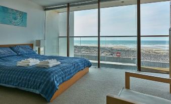 Number 20 Nautilus is a duplex luxury apartment in a contemporary development adjacent to the magnificent sandy beach at Westward Ho! The holiday apartment is owned and furnished by the architect Guy Greenfield. In 2005 the building won the only Royal Institute of British Architects annual award for architecture in Devon and Cornwall. It has been featured in numerous publications. The apartment is exceptionally spacious, the sculpted roof creates an exciting interior with huge windows to make the most of the sea view. There are three balconies including an external sea facing terrace on the living level with table and chairs for 'al fresco' dining and to enjoy the magnificent sea view and sunsets.About pets:No pets allowed.About checkOut:Check out before 10:00 AM.About children:Children allowed: ages 0-17.About checkIn:Check in after 5:00 PM.About smoking:Smoking is not permitted.About events:No events allowed.