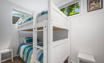 Private entry. Dble bedroom (King). Second small bedroom (KS bunks). Private deck. TV - Sky Sports, Netflix. Well equipped kitchen - Air Fryer, Nespresso, Microwave. Washer/Dryer.
