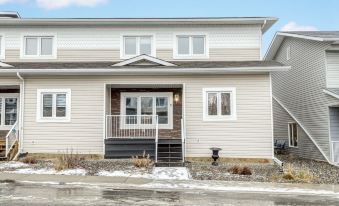 Welcome to your luxurious Yukon getaway. This stunning end unit townhome is the perfect retreat for your group of family or friends. Walking into the main floor you'll find the large open concept kitchen/dining and living area. The kitchen has everything you will need and you can dine on the large kitchen bar or the beautiful live edge wood dining table. Relax and recharge on the oversized sectional couch while watching any of the streaming services on the 65" TV. Also on the main floor is a full bathroom with shower/tub and the 4th bdrm/office. Coming for work and need a designated workspace? Enjoy the office space with desk area and complimentary wifi. Have a larger group and need another bedroom for 2 more guests? The room has a comfortable queen sized futon and can be easily used as a 4th bedroom with closet.