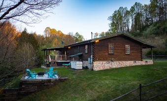 Ascension Cabin is a log home on 1 acre of land overlooking a small stream with wooded views five minutes from Summersville Lake, with New River Gorge a short drive down the highway. The cabin has a traditional feel with a comfy gas burning fireplace, plus modern amenities like high-speed internet and smart TVs. Outside is an elevated deck with grill and outdoor dining, plus a new hot tub, lounge chairs and your choice of a wood-burning fire pit or gas fire table.