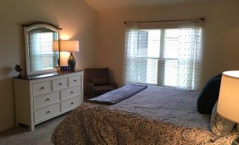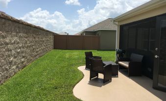 You'll feel welcomed and right at home as soon you open the front door to your home away from home. This home is comfortably decorated with light & airy charm. The kitchen is complete with everything you'll need to prepare and serve meals and offers a charming eat-in nook for a quick breakfast or light mid-day lunch. The living room offers plenty of comfortable seating to enjoy your favorite television shows on the flat screen TV. The master bedroom has a king size bed, TV, walk-in closet, and a private master bath with a walk-in shower. The 1st guest bedroom has a queen size bed and TV for your guests to enjoy. The 2nd guest bedroom has a queen size bed for your guests comfort. The bedrooms and both bathrooms are set up with extra towels and linens. Of course don't forget about the enclosed lanai that offers a peaceful outdoor living space all year round. The lanai provides plenty of comfortable seating to enjoy your morning coffee or juice and newspaper. The outdoor space is great for those nights you want to enjoy grilling out and enjoying time with your new friends. It is also a great place to end a busy day of activities with a cold drink before heading out to the town square and dance the night away. With the uniquely enclosed backyard, the family pet will have space to play also!