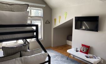 Queen Bed and Bunk bed (Full and twin mattress)/ Flat Screen Smart TV and Cable/ large window overlooking front yard