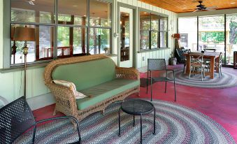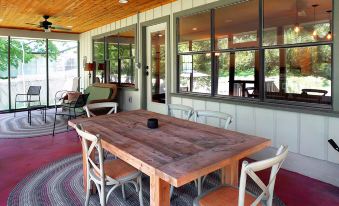 The outdoor entertaining space is what positively delights. The great screened in porch seats ten and looks out onto the rolling lawn and languid river. This indoor/outdoor space can be comfortably enjoyed throughout Texas’ famous two season year. The Blanco River is best enjoyed in the summer, but as long as there is water running through its rocky shallows guests can fish, splash, float, or just lounge. Because this property is the best place to spend a lazy day on the river.
