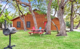 The Wimberley Log Cabins Resort and Suites is a beautiful tree-lined property great for wedding parties, corporate retreats, or family reunions. It is made up of four separate structures. Building One is the Texas Cabin Suites with an enclosed privacy hall containing four motel style rooms. Each of these rooms has a king size bed and kitchenettes. Building Two -- The Lone Star Cabin Suites-- feature four additional motel style rooms. with queen size beds in each. Two sizable houses also dot the property; the Oak Lodge and the Reunion Cabin.