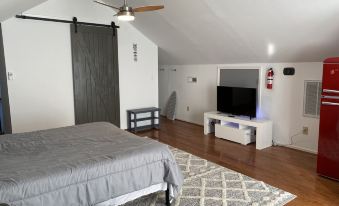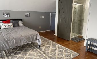 This unique place has a style all its own. This is a newly renovated studio apartment with a full bathroom and small kitchenette. The space is completely separate from the main house and is located above the garage with a separate entrance to the right of the garage. You will need to go up the stairs to the right of the garage to access the apartment.