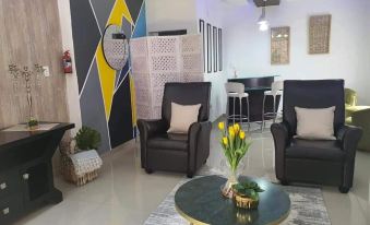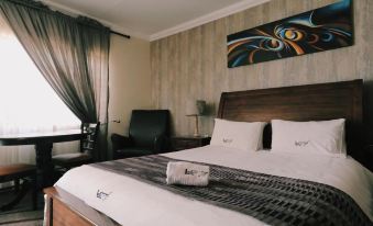 Elegant design rooms equipped with mobile airguns and wall heaters,rooms equipped with microwave ovens ,self-catering facilities, Wifi connections mini bar fridges,dstv secured parking with security cameras and a sitting room equipped with a smart tv