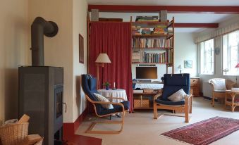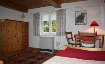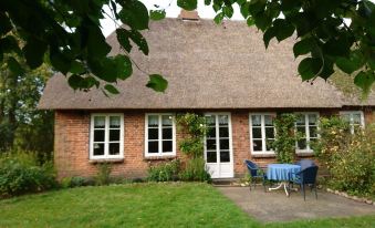 This thatched roof house was built in 1829 and was originally the village school. The one half was used as the teacher's apartment, the school area is now used as a cozy holiday residence. Out the southern windows of the old classroom one can see the large garden, which can be used. The north side of the property can partly also be used for games and sports.