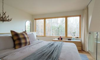 “The loft has a king bed that looks out the A-frame windows into the woods as the sun rises each morning....” ~Kyle