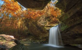 The private woodland preserve is surrounded by the Little Fork of Devils Creek with a rock house and water fall depending on time of year. Guest are free to roam and explore. Behind our property are endless acres of untouched forest.
