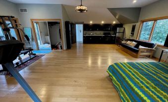 Get ready to relax in a fully independent guesthouse in a stone castle in Woodstock . This terrific property features one huge 825 sf. of loft space with full kitchen and rustic full bathroom and another spacious room with attached modern full bathroom ,with one queen bed and two queen size sofa bed, perfect for a small group of guests. Two full beautiful rustic bathrooms offer a refreshing shower body and 6 sets of water jets , bidet, heating and AC ensure a cozy atmosphere all year-round. Property is located on top of the hills of village of Woodstock with tranquilizing privacy ideally located within 5 miles from the New York Thruway 87, village of Woodstock, trendy city of Kingston, town of Saugerties and amazing town of Rhinebeck. Enjoy the country life, hunting, hiking in 50 acres of wooded land surrounding the property with stream running true with great mountain view , deer and wild Turkey nesting all around this property. Out door patio wraps around the property with 5000 sf. of stone pavers with breathtaking view of the west and east mountains, a stone query nearby with beauty of wetland are a unique features of this property , hiking trails runs through the property and continued all the way to the next town . About pets:Pets allowed: dogs and cats less than 20 lbs per pet (limit one pet total).About checkOut:Check out before 11:00 AM.About children:Children allowed: ages 0-17.About checkIn:Check in after 4:00 PM.About smoking:Smoking is not permitted.About minBookingAge:Minimum age to rent: 18.About events:No events allowed.