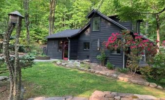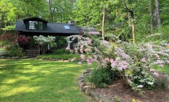 Magical upstate cottage on 2 acres in the heart of Woodstock. Pvt heated saline pool & beautifully landscaped gardens w/ fountains & fire-pit.The MB features a wall of windows to the secluded second deck w/ a second loft bedroom upstairs. The separate artist studio has a large desk and queen-sized bed for extra guests. A raised bluestone pond keeps the frogs happy, while baby birds nest in the dramatic birdhouse sculpture. Close to hiking, restaurants & stores.