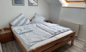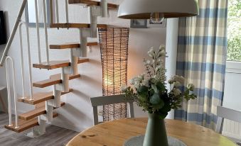 Die Wohnung ist sehr gemütlich eingerichtet und bietet genug Platz für vier Personen. Die Küche ist zum Kochen perfekt ausgestattet. Der Balkon und das obere Stockwerk sind tolle Extras. Die Wohnung befindet sich in ruhiger Lage unweit des Deiches.