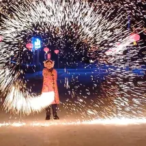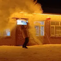 Ding senior also taught us carefully how to execute the Dongbei “hot water splash” and “fire sprinkler” shows in the cold. We all had great fun doing that !