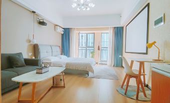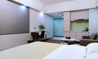I had a very pleasant stay at the hotel ! Big room with a nice view. The washing machine is so useful, and the projector screen offers a lot of movies in Chinese and English. The Wanda area has many restaurants, shops, a cinema, etc. just a few steps away. Lakes and parks are very close, it's ideal for a morning jogging.