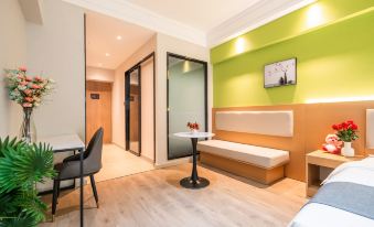酒店環境非常好,衞生也很到位。室內面積很大,配套設施也很好,沐浴露洗髮水護髮素洗手液一應俱全,一次性的毛巾和馬桶套也是有的。百寸大屏看電視很爽!5號線就在樓下,特別方面,老闆服務也好
