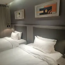 letto comodo. Molto vicino alla metropolitana. Solo che non riesco a fare la doccia calda nemmeno a girare il rubinetto su caldo. Camera pulita. Lo spazio della lobby è grande.