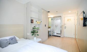 Arrived at midnight but there was no one at service desk to open the door, went in with the help of other hotel guest who came back from outside, then managed to check in after contacting staff via WeChat. Will advise to inform staff of late arrival to ensure smooth check-in. The apartment is quite old, but cleanliness is fine, and housekeeping service is available daily. The location is outside the tourist spots, however, with close proximity to the metro station and away from crowds. There are eateries and convenience stores near the hotel.