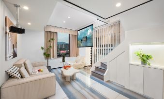 Yuexiang Deluxe Two-Bedroom Suite – Stylish Loft With Living Room & HD Projector