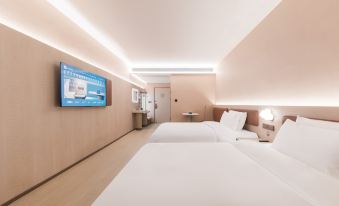 There are two versions, khakimi and cloud water blue, to meet the different preferences of business people and young travelers. The rooms are equipped with 0-pressure memory pillows and high-star white duck down quilts as standard, providing a comfortable sleeping experience. Smart heating toilets have become standard, and flushing at night does not disturb sleep.
