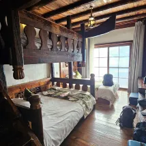 Camera bellissima e pulitissima e dotata di ogni comfort, un plus il letto matrimoniale in legno con lo stile della loro minoranza etnica😍