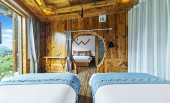 Affectionate Cozy Family Twin Room-Independent Near River Balcony With 180° Lotus Night View, Kung Fu Tea Set, Swing Chair