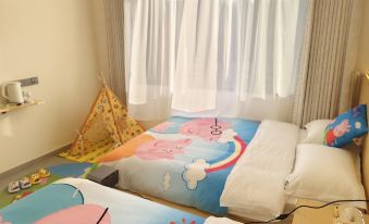 很適合一家人來住,特別是小一點的寶寶。房間裏有帳篷,孩子很喜歡!户外還有小朋友玩的滑滑梯,小自行車!老闆娘很熱心,早上還給我們準備了稀飯和饅頭,鹹菜特別好吃,老闆娘自己家裡做的!總之5星好評!