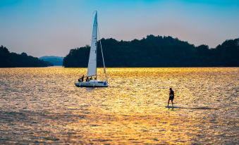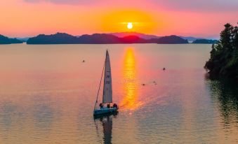 In the misty rain of the south of the Yangtze River, amidst the beautiful landscapes of Jiangxi Province, lies the charming city of Jiujiang, and the poetic and picturesque Lushan West Sea. The Yiweihang Vacation Guesthouse is located by the Mengersheng Mountain Wharf in the Lushan West Sea Scenic Area, a national 5A-level scenic spot in Jiujiang City, Jiangxi Province. It faces the Zhelin Lake, which covers an area of 308 square kilometers in the front, and is adjacent to the evergreen Mengersheng Mountain. It is neighbors with the extremely beautiful dopamine-colored viewing stands and the relaxing meadow. In the morning, you can watch the rising sun behind Mengersheng Mountain, and in the evening, you can enjoy the splendid sunset and the rosy clouds. Standing on the roof, you can have a panoramic view of the famous scenic spot in the West Sea, the "Tree in the Vast Sea". The Zhelin Lake, with its first-class water quality, is crystal clear. It is the habitat of the peach blossom jellyfish. The air is rich in 150000 negative oxygen ions per square centimeter. Spending a vacation here can soothe your mind, brighten your eyes, and cleanse your lungs. In addition to the healthy atmosphere brought by nature, the pickleball court and the sailing yacht club will make sports enthusiasts reluctant to leave. Activities such as sailing, stand-up paddleboarding, hydrofoil surfing, pickleball, tennis, badminton, mountain hiking trails, cycling along the lake, and morning and night running on the boardwalk along the lake are all invitations to a healthy life. The first phase of the Yiweihang Vacation Guesthouse consists of two buildings: Yiweihang·The Realm of the Island and Yiweihang·The Realm of the Mountain. There are a total of 42 guest rooms, with a design style that combines the wabi-sabi style and the Chinese vintage style, while also taking into account a sense of relaxation and refinement. There are various types of rooms, some with a view of the sea and some facing the mountain. On the first floor of The Realm of the Island is the original brand Xiyu Coffee. Guests can sit by the window, savor the mellow coffee ground from the original coffee beans imported from South America, and enjoy the carefully prepared Western-style meals, spending a leisurely afternoon. In winter, you can also gather around the stove to boil tea. Even if you do nothing but sit quietly in a daze, it's also a wonderful experience. What needs to be introduced with great fanfare is the Weixiaoxian Ecological Hot Pot located in The Realm of the Mountain. If you come to the West Sea without tasting Weixiaoxian, even if you call yourself a food connoisseur, it's in vain. Weixiaoxian mainly serves organic fish from the Lushan West Sea, such as mandarin fish, bass, black carp, Chinese longsnout catfish, silver carp, etc. These fish have grown up in the Zhelin Lake, and their meat is delicious and firm. There is a saying that "after coming back from the West Sea, you won't want to eat other fish anymore." Whether it's a mushroom soup base, a tomato soup base, or a herbal soup base, when paired with the fish from the Lushan West Sea, the wagyu beef from Australia, and the mushrooms from Yunnan, it's a delicacy that even food connoisseurs can't bear to put down their chopsticks. Of course, it's also a wonderful thing to enjoy the evening breeze and the sunset on the rooftop of The Realm of the Island, have a glass of cocktail with steak, beer with barbecue, or appreciate the works of designers from all over the world at the Yiwei Bazaar. Flowers bloom throughout the four seasons. On sunny days, you can admire the shimmering water, and on rainy days, you can enjoy the hazy mountain scenery. When you're idle, you can sit by the sea and savor a cup of handcrafted coffee, and when you're busy, you can look up and see a magnificent landscape painting just like "A Thousand Li of Rivers and Mountains in Green". Mengersheng Mountain understands the stiffness of your shoulders and neck, and the Zhelin Lake hears the noise in your heartbeat.——Start a conversation with Yiweihang now.